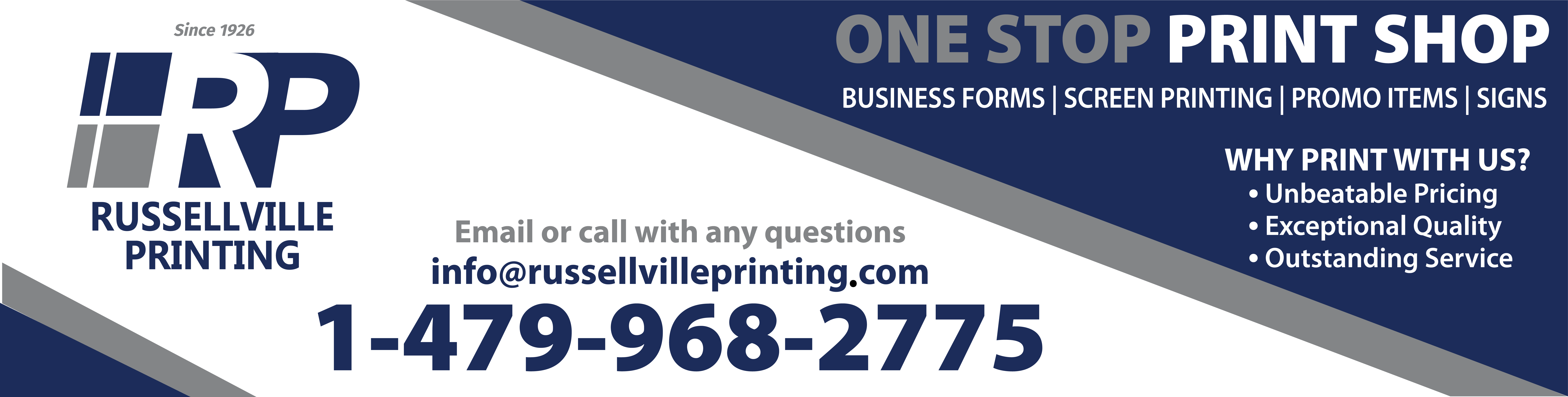 At Russellville Printing, we deliver creative marketing solutions, and help your brand and business grow. With years of experience in print and marketing, we use the latest design and production techniques to bring your ideas to life. Our goal as a business is to always exceed our customer's expectations. Russellville Printing is committed to making it easier for you to order print. So contact us today to discuss your specific needs, and with a personal touch our excellent service will ensure the task of managing your printed materials is greatly simplified.